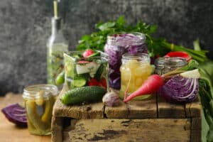 - Fermented Pickles: cucumbers fermented in brine with Lactobacillus species — not the same as vinegar pickles.